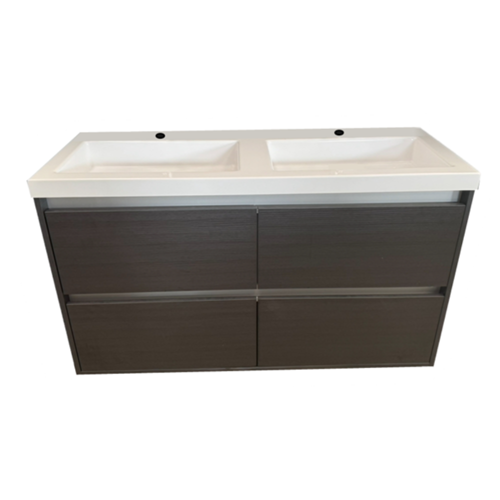 St Michel City 46 1200mm Double Bowl 4DR wall hung - Charred Oak/Ext-Nickle