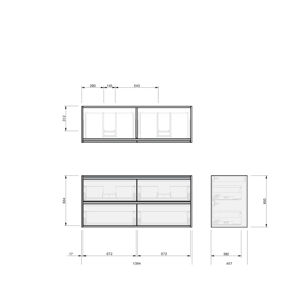 Bottom drawers are supplied with no cut-out on WALL-HUNG models. Non-standard supply is available upon request at no extra cost, please specify: Add cut-out .